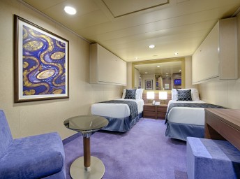 Vnútorná: 13-16m², kajuta s manželskou posteľou (na požiadanie 2 oddelené postele) a 1-2 vyklápacie horné lôžka. Klimatizácia, kúpeľňa so sprchou, toaletný stolík, interaktívna Tv, skriňa, minibar, sejf, telefón, sušič na vlasy. Internetové pripojenie (za poplatok).