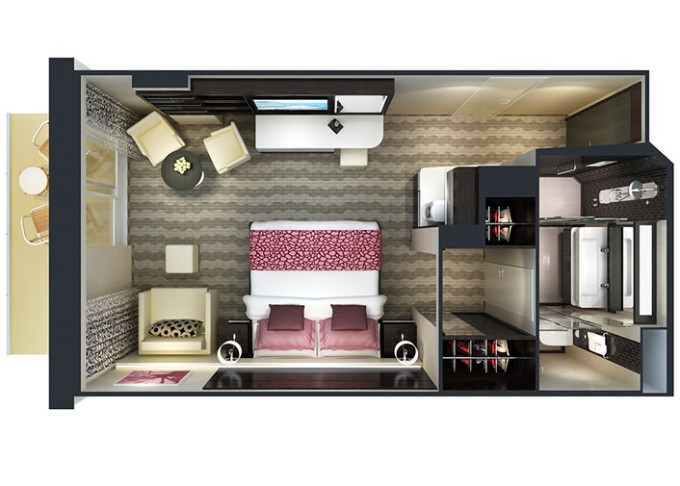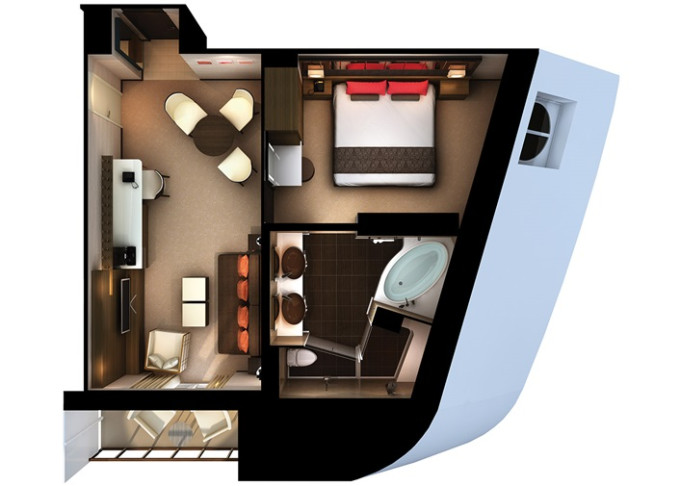 HI - The Haven Penthouse Suite 28 m² / balkón 5 m². 14. paluba - vpredu. Max 2 osoby. Výhody The Haven. 1 924 € 962 € za osobu