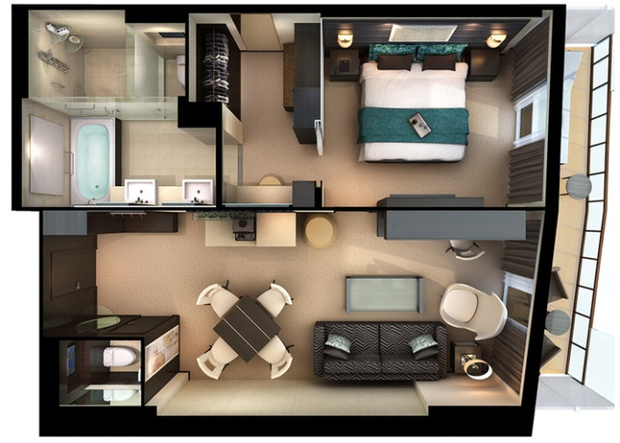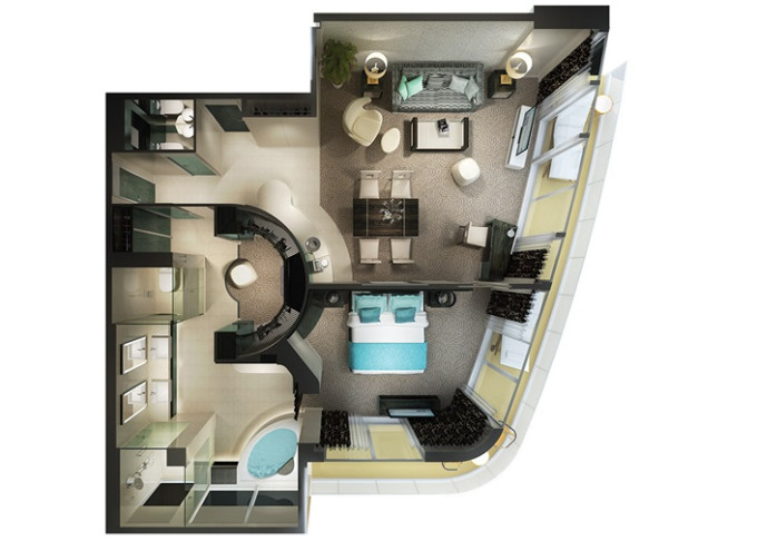 H7 - The Haven Aft-Facing Penthouse 73-77 m² / balkón 34-38 m². 9,12. paluba - vzadu. Max 4 osoby. Výhody The Haven. 2 884 € 1 442 € za osobu