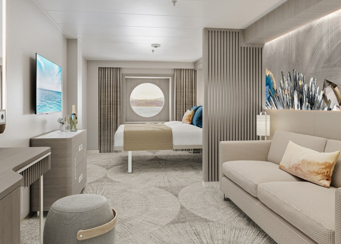 | SI - Suite s veľkým balkónom Aft-Facing 41 m² / balkón 18 m². 9. paluba - vzadu. Max 2 osoby. Výhody Suite. | 4 768 € 2 384 € za osobu |