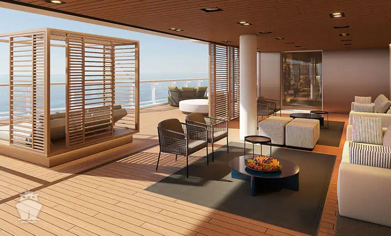 | SH - Suite s veľkým balkónom Aft-Facing 58 m² / balkón 34 m². 9. paluba - vzadu. Max 4 osoby. Výhody Suite. | 5 680 € 2 840 € za osobu |