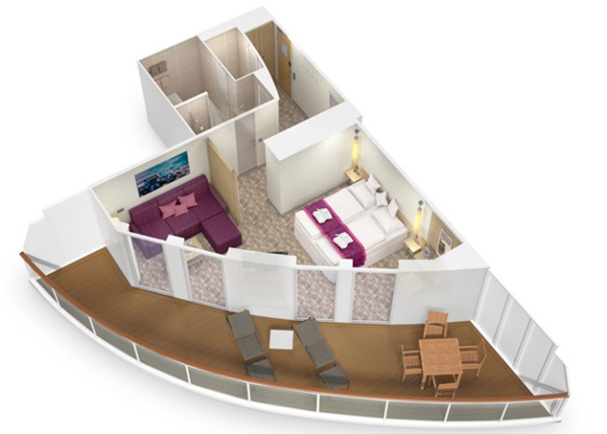 21 kategórií, vrátane family kajút, single kajút, Junior suites so zimnou záhradou a Premium a Penthouse suites o veľkosti až do 53m².