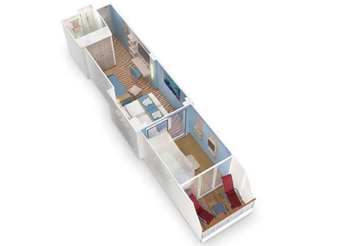 | VA - Kajuta s verandou Komfort PREMIUM 17,5 m² + balkón 5,5 m². 8. až 17. paluba. Max 4 osoby. Cenový model Premium. | 2 170 € 1 085 € za osobu | ||