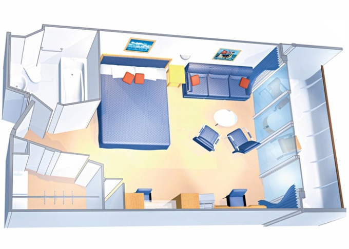 | VP - Ocean View Panoramic Suite (bez balkónu) 38 m². Panoramatické neotvárateľné okná. Max 6 osôb. Výhody Suite. | 2 770 € 1 385 € za osobu |