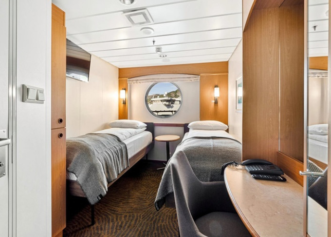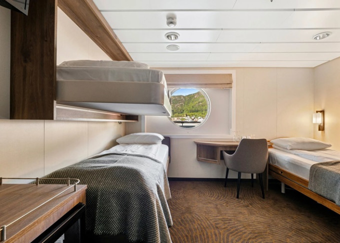 | L2 - Vonkajšia kajuta Polar s obló 10-11 m². Neotvárateľné obló / môže byť obmedzený výhľad. Oddelené postele. 4. paluba. Max 2 osoby. | 8 278 € 4 139 € za osobu | ||