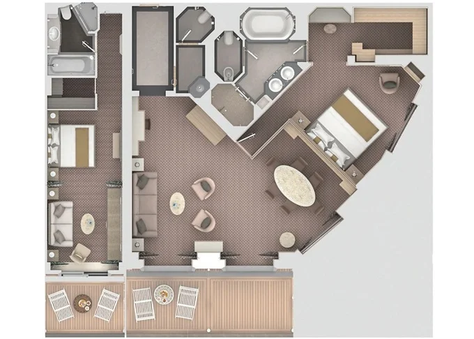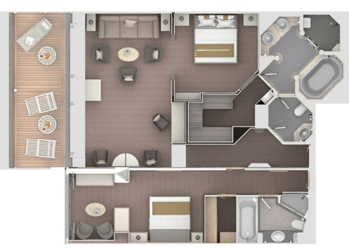 R1 - Royal Suite 1 105 m² (vrátane balkónu). 7. paluba vpredu. Max 3 osoby. 31 200 € 15 600 € za osobu