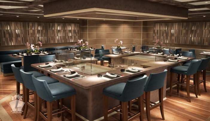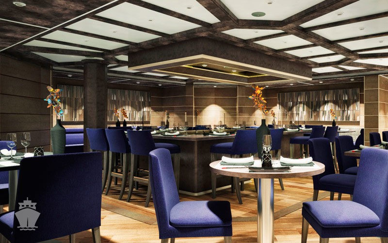 • Kaiseki - japonská reštaurácia, inšpirovaná 5 základnými prvkami japonskej kuchyne, so zreteľom na ekvilíbrium yin a yang. Dôraz na bezchybnú prípravu a nádhernú prezentáciu každého chodu. presentation. Počas dňa výber sushi, sashimi a iné raw ázijské jedlá, večer aj teppanyaki. Dress code: neformálny. Príplatok $ 60. Nutná rezervácia.