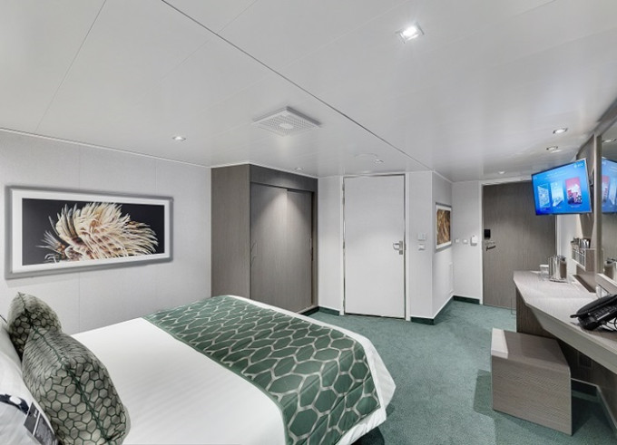 - Ubytovanie v plne vybavenej kajute: vlastná kúpeľňa so sprchou a WC, interaktívna TV, telefón, safe, sušič na vlasy, regulovateľná klimatizácia, minibar (za poplatok). Pripojenie na internet cez Wi-fi (za poplatok)