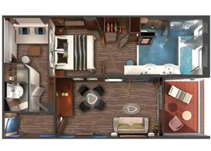 | S4 - Deluxe Family Suite - 2 spálne 51 m² / balkón 5 m². 11. paluba - vpredu, stred. Max 6 osôb. Výhody Suite. | 5 868 € 2 934 € za osobu | ||