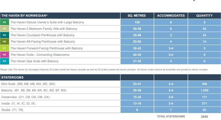 | HB - The Haven Aft-facing Penthouse 58-62 m² / balkón 18-23 m². 9,12,15. paluba - vzadu. Max 4 osoby. Výhody The Haven. | 13 982 € 6 991 € za osobu |