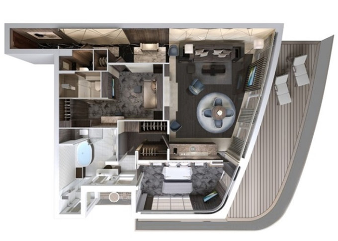 | H2 - The Haven Deluxe Owner's Suite 136 m² / balkón 45 m².18. paluba - vpredu. Max 6 osôb. Výhody The Haven. | 34 194 € 17 097 € za osobu |