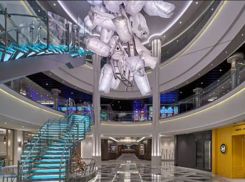 Ocean Loops - tobogan s dvojitou vývrtkou, vychádzajúci 3 m zboku lode, vo výške 48 m nad oceánom.