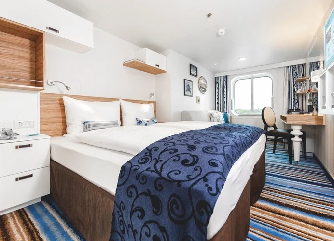 | AUAO - Kajuta s oknom kat. A 17 m². Neotvárateľné okno. 3,8. paluba. Max 4 osoby. | 13 012 € 6 506 € za osobu | ||