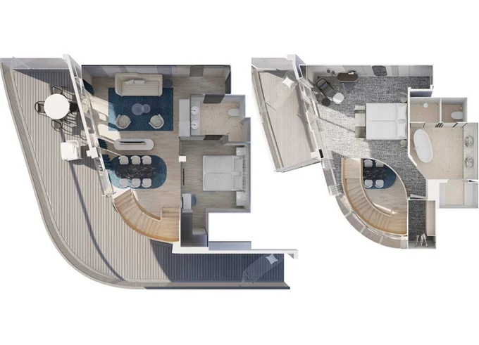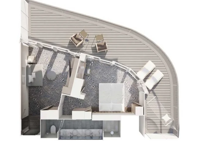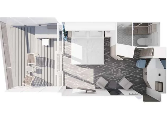 | VEPO - Kajuta s terasou Premium 30 m² + balkón 35 m² so stoličkami, ležadlami a hojdacou sieťou. 15. paluba. Max 2 osoby. | 7 098 € 3 549 € za osobu |