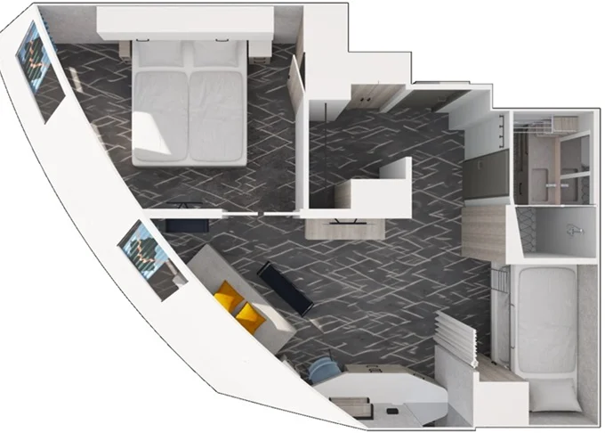 | JBCO - Junior Suite s balkónom C 26 m² + balkón 7 m² so stoličkami a podnožkami. 7. paluba. Max 4 osoby. Výhody Junior Suite. | 8 198 € 4 099 € za osobu | ||