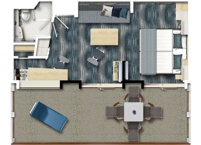 | SUSO - Übersee Suite 40 m² + balkón 9 m² s ležadlami a hojdacou sieťou. 14. paluba. Max 4 osoby. Výhody Suite. | 8 247 € 2 749 € za osobu | ||