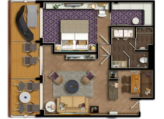 | SUTO - Themen Suite 54 m² + balkón 15 m² so stolom, ležadlom a hojdacou sieťou. Spálňa, obývacia časť, šatník. 10. paluba. Max 4 osoby. Výhody Suite. | 17 136 € 5 712 € za osobu | ||