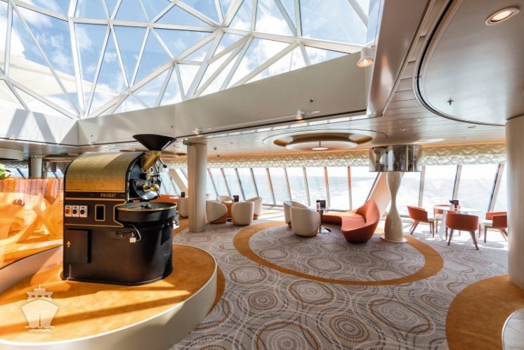 - Značkové nápoje na palube (nealkoholické nápoje, pivo, sekt, víno, koktaily, long drinky, liehoviny, kávové špeciality) počas celého dňa v reštauráciách, baroch a salónoch